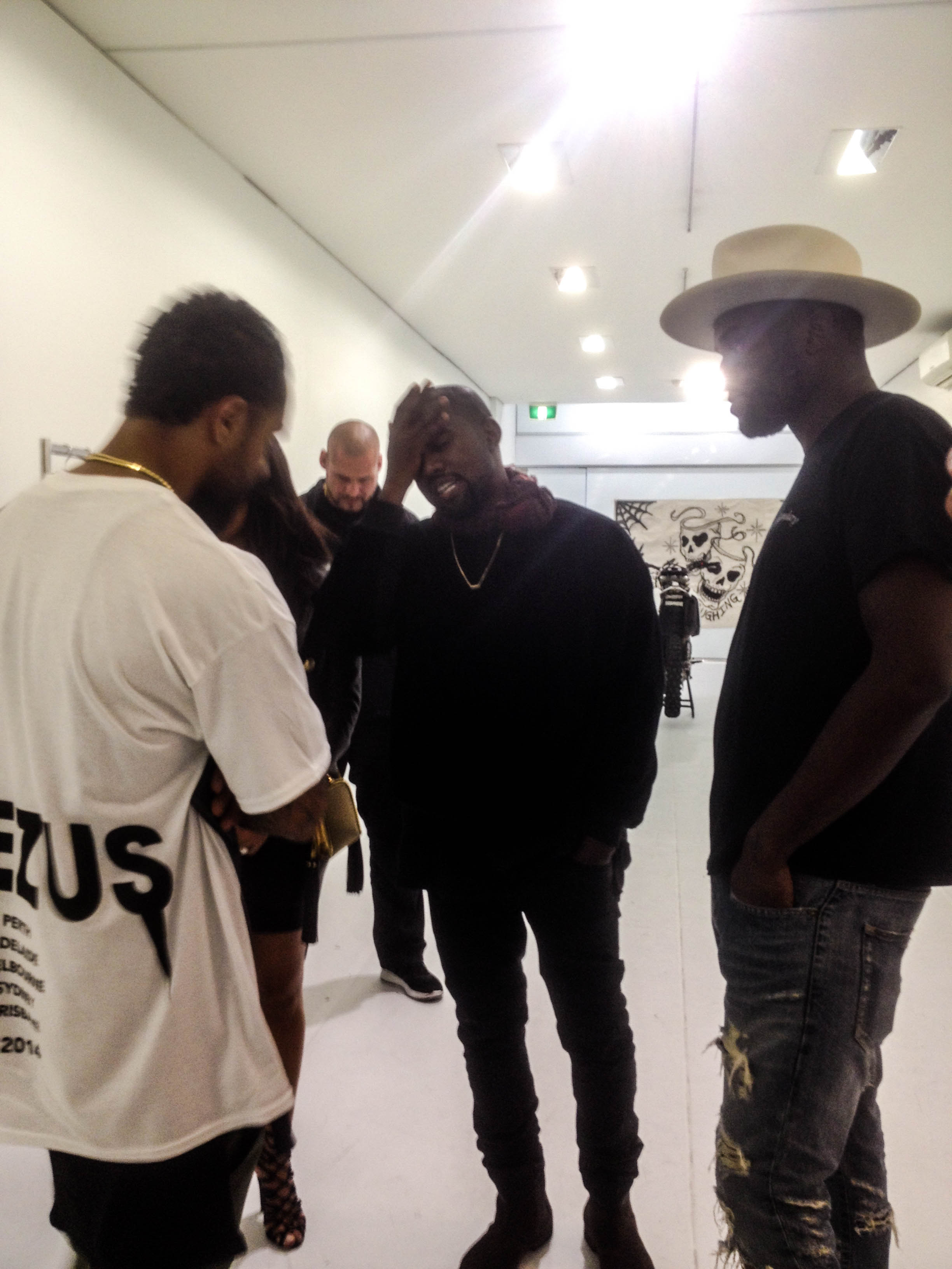 After about 15-20 min of being in the store with them we looked at the time and realised we might not make it back to the arena in time. I go shake Kanye’s hand one more time, say goodbye and thank him as we leave. Literally 5-10 seconds after we walk out Kanye and Kim follow behind (Kanye clearly following my lead) and there are hundreds of people outside swarming them as Pascal is pushing people at the way protecting them from the flashing lights of cameras and elated fans. They get in the car and drive off as were left standing there like we have got to be some the luckiest people. The timing was perfect. If we were 5 min later or 5 min earlier we probably wouldn’t have met them. If I didn’t wait all day for to get a chance for front row I probably wouldn’t have met him. So many variables but we were just lucky.