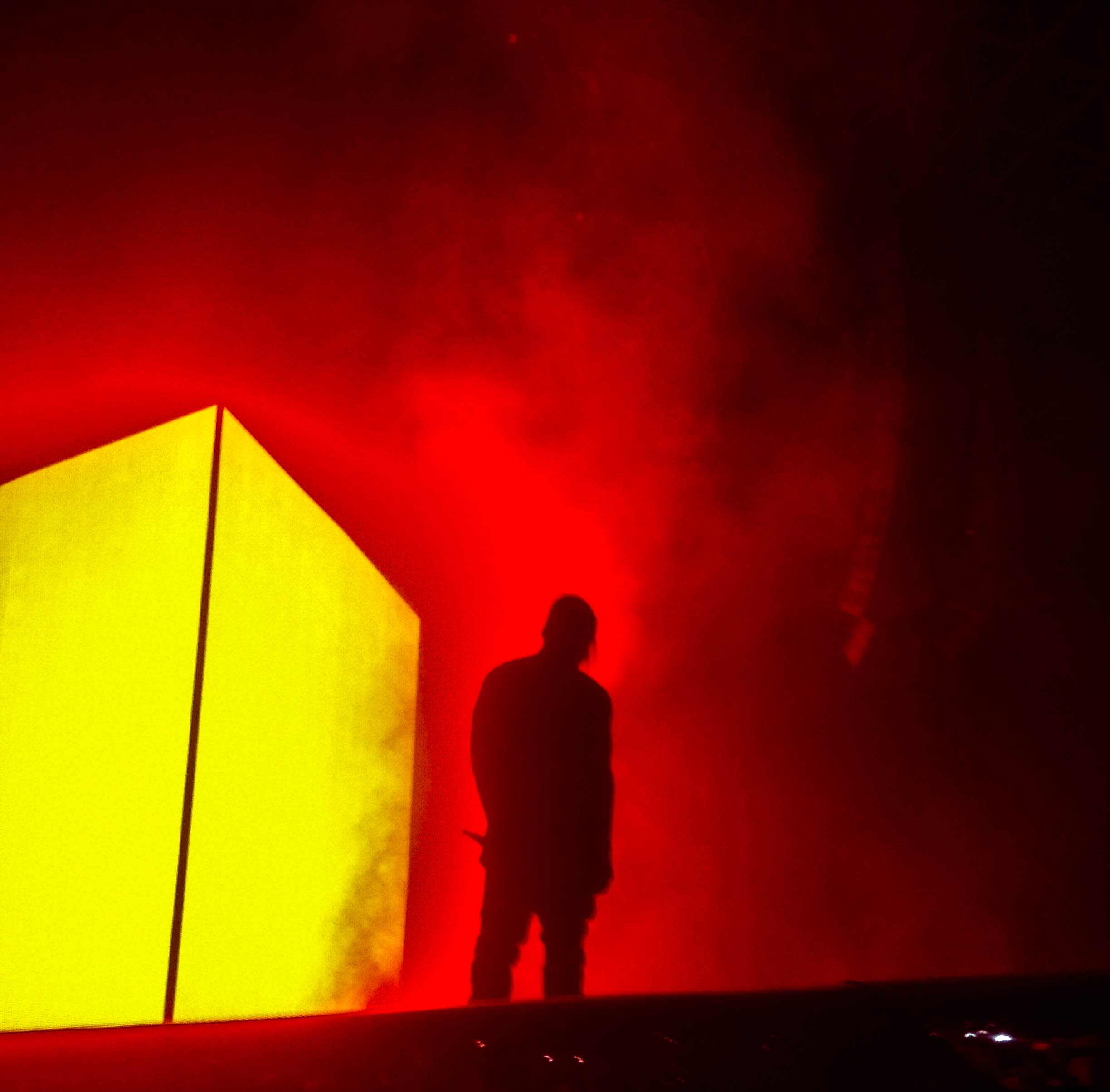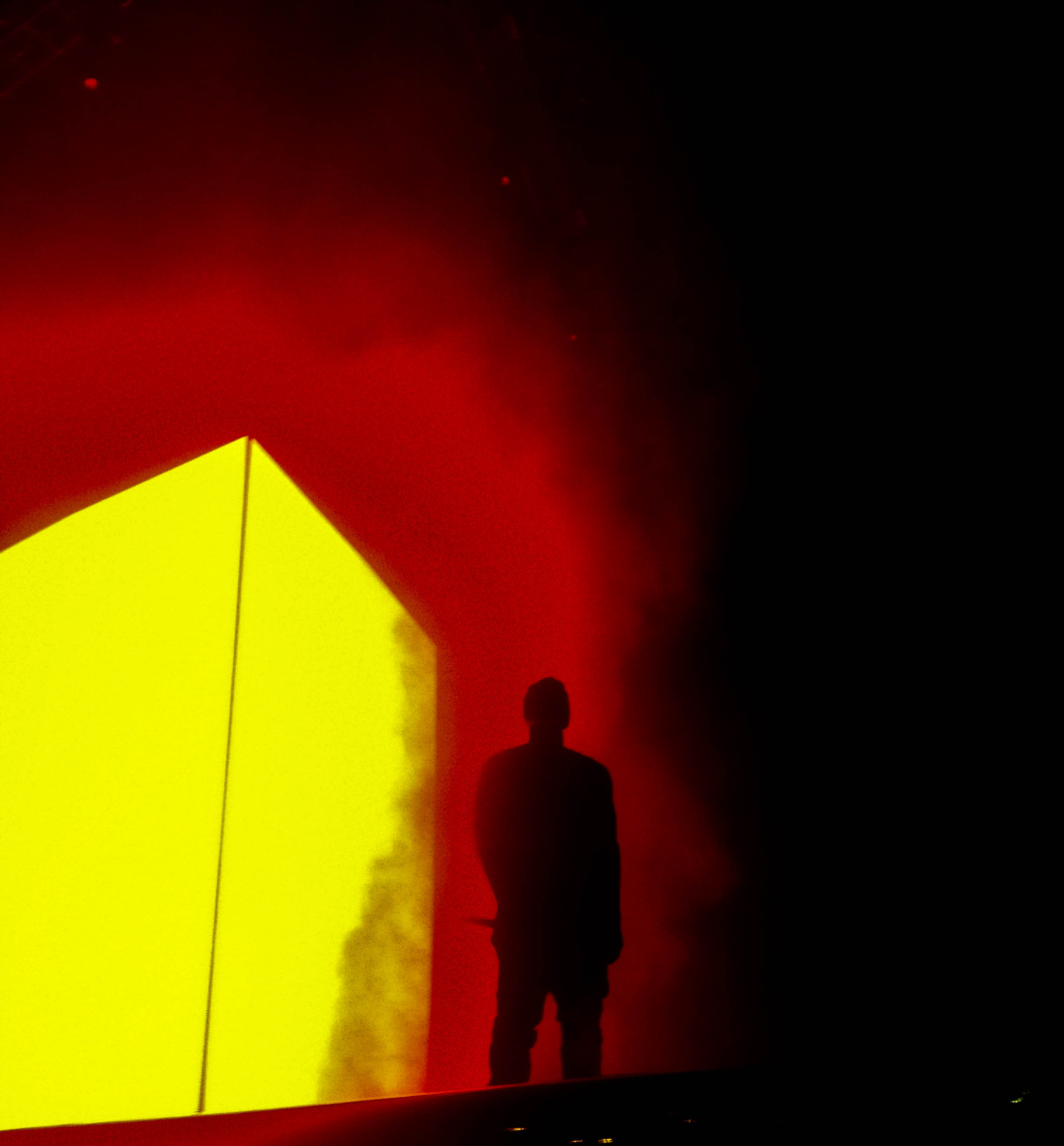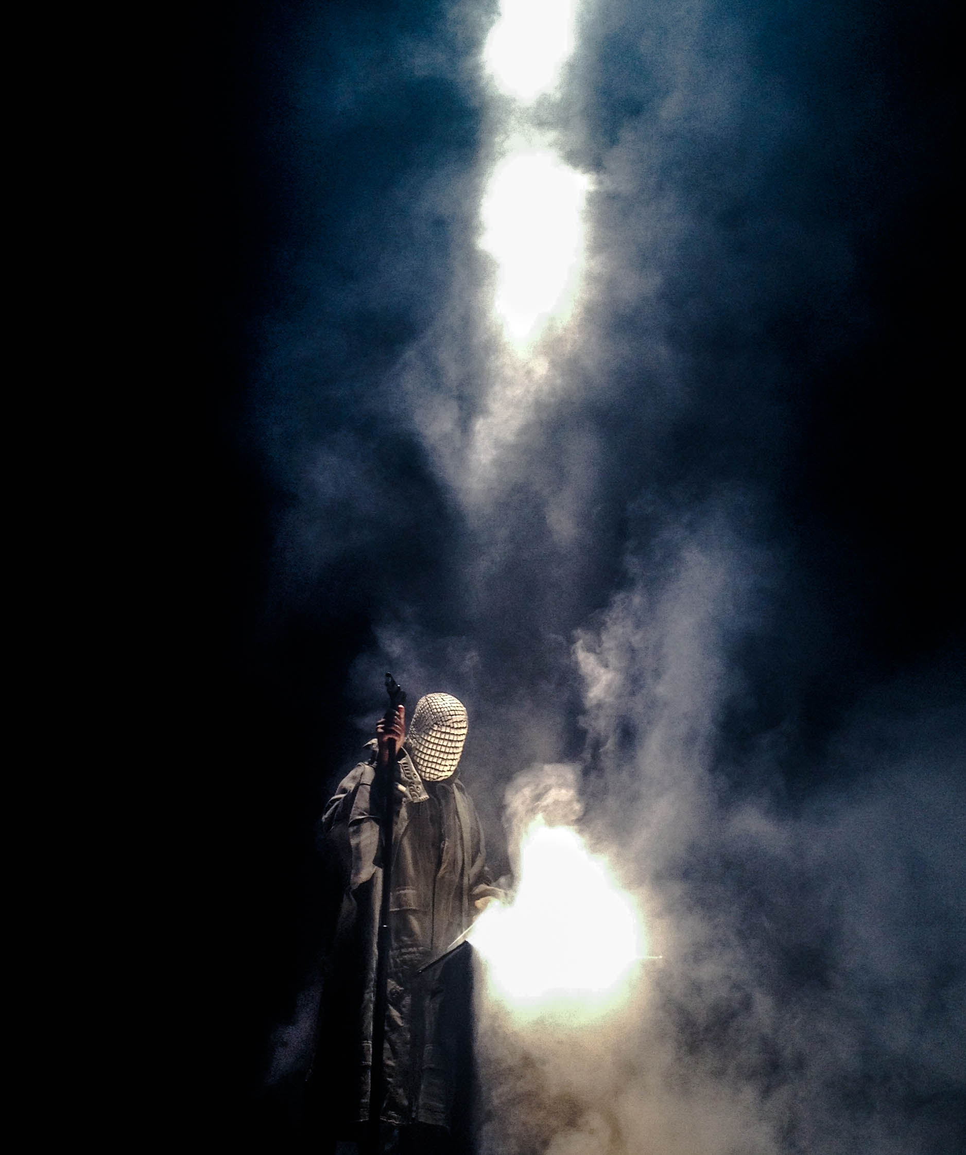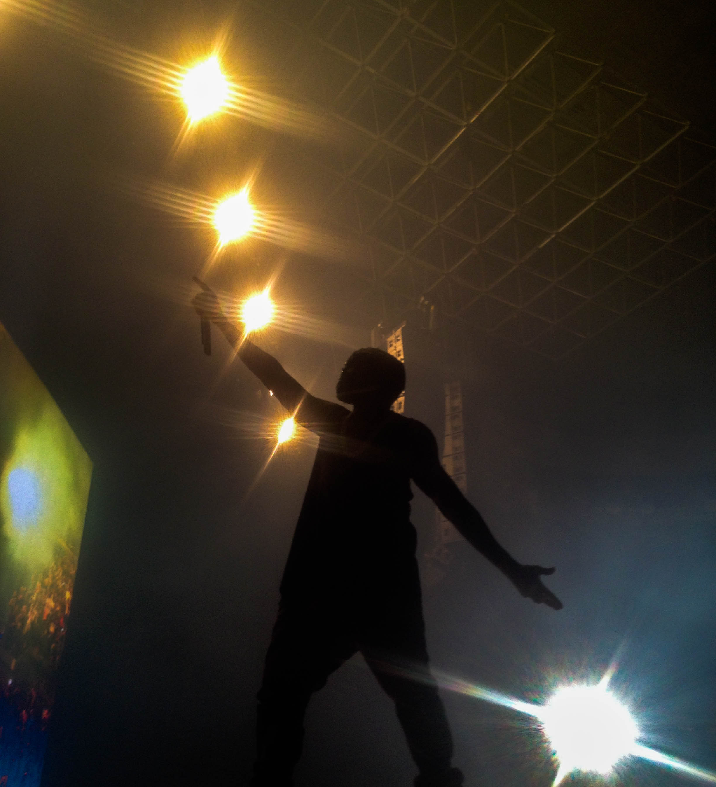 Kanye raised up from under the floor with fireworks going off. Its how GODS roll I guess. He opened with On Sight and did music from all his albums, nothing from his new album.