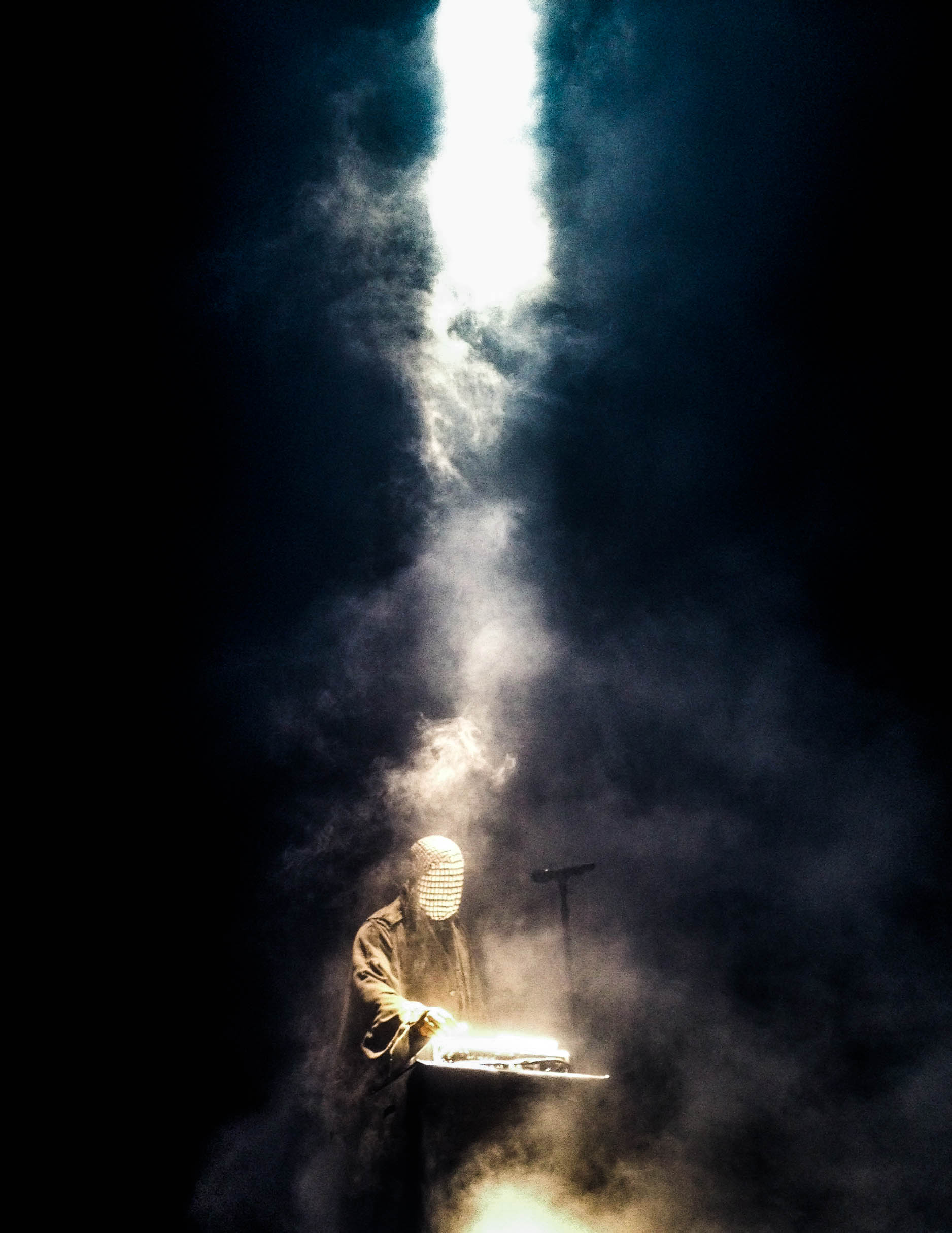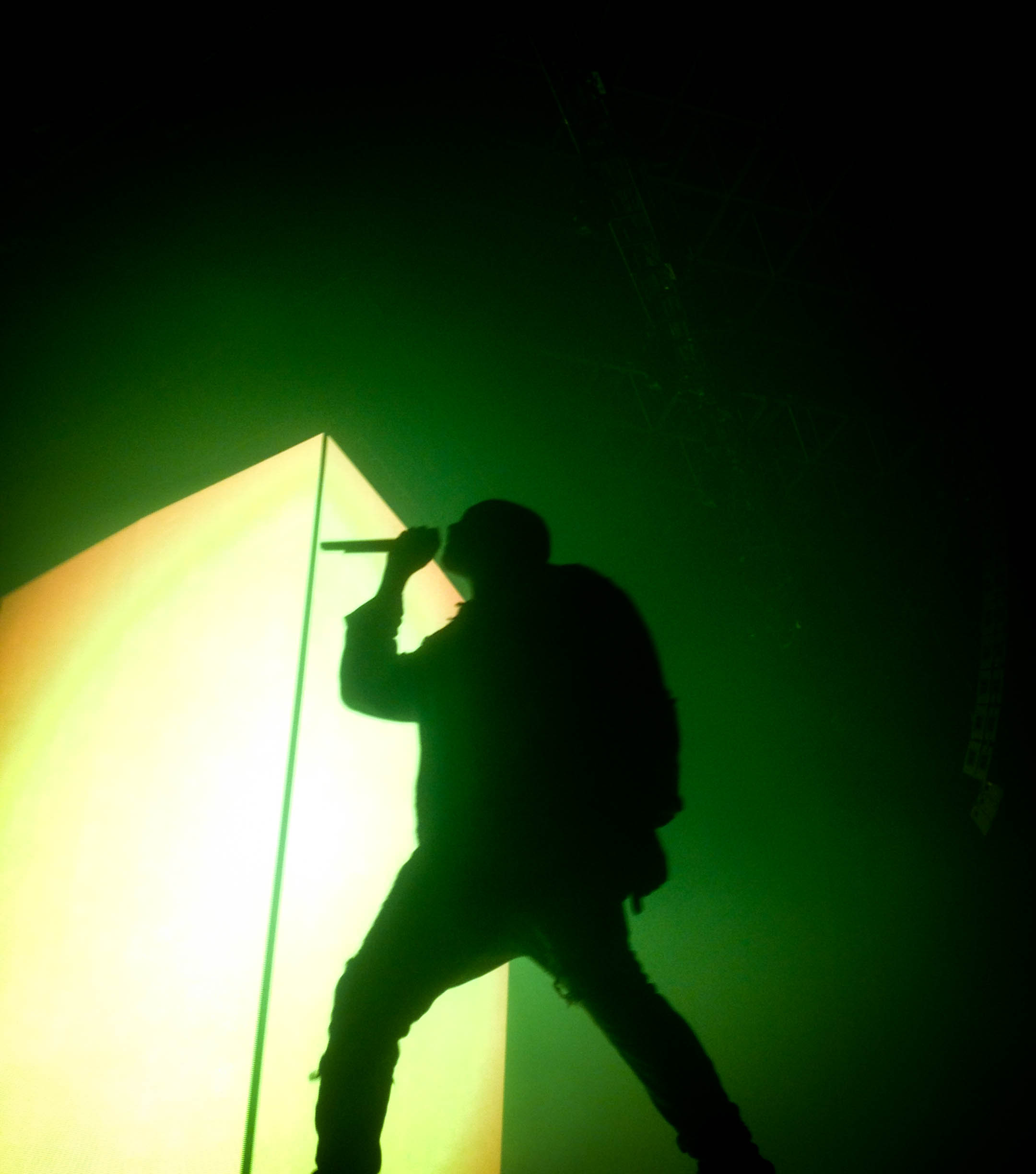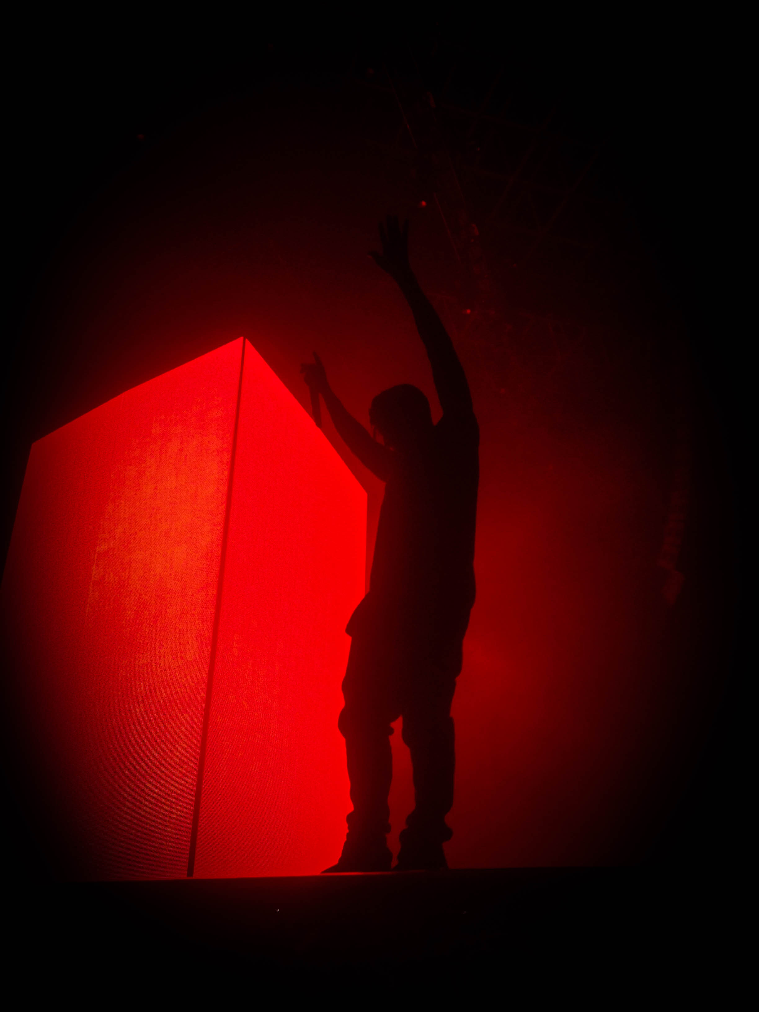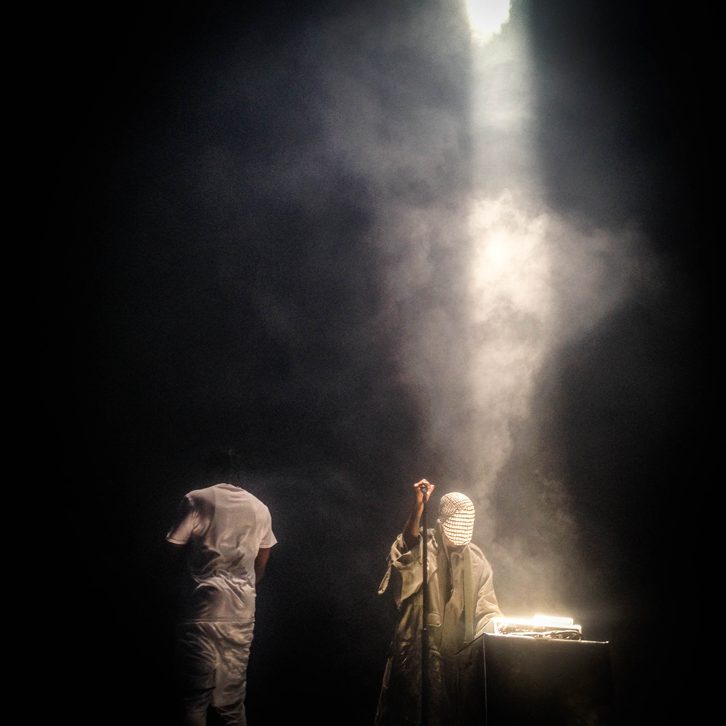 Kanye raised up from under the floor with fireworks going off. Its how GODS roll I guess. He opened with On Sight and did music from all his albums, nothing from his new album.