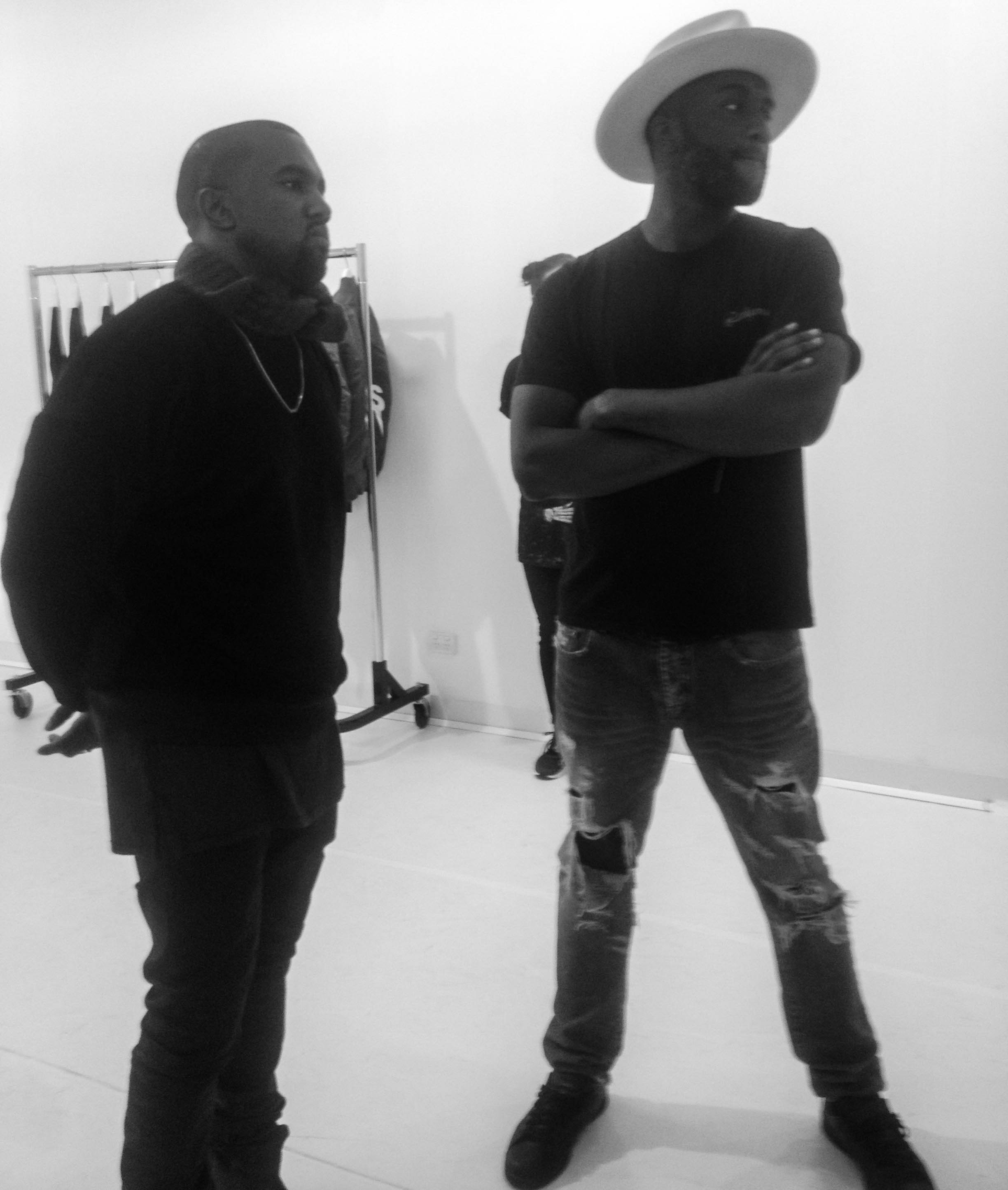Kanye greets Jerry, Virgil and he’s cousin Tony Williams I walk up to Kanye, shake his hand and compliment the clothing line.
